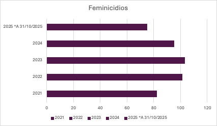 No son hechos aislados, ya que el año anterior acabó con 95 feminicidios. Los datos recogidos desde 2021 [2] se presentan en el siguiente gráfico: